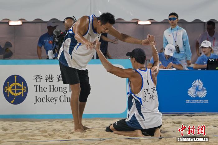 (粤港澳全运会)十五运会男子沙滩排球:江苏队组合吴佳欣/周朝威夺得金牌